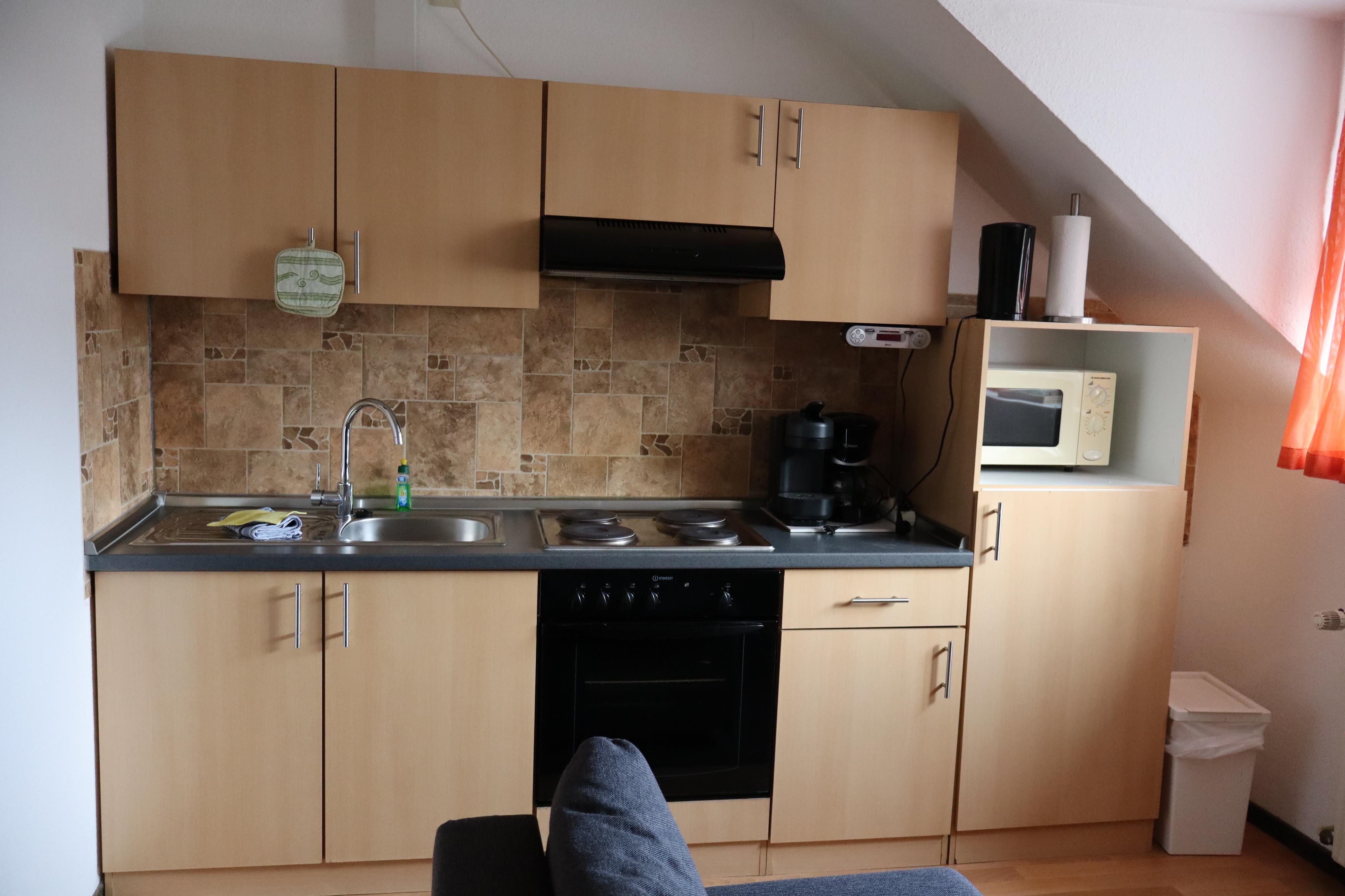 Unsere Gästewohnungen verfügen alle über eine Küchenzeile inkl. Geschirr, Kochutensilien, Kaffeemaschine und Mikrowelle, was Ihnen optimale Möglichkeiten der Selbstverpflegung bietet. Ein Fernseher und Radio sorgen für Unterhaltung während Ihres Aufenthaltes.